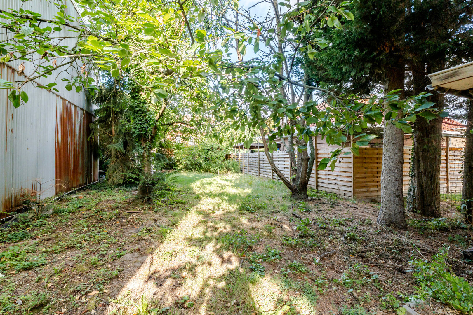 Rural building plot (2a 21ca = 221 m²) suitable for a semi-detached single-family home. A visual simulation showing the possible building width and depth is included in the photo gallery.