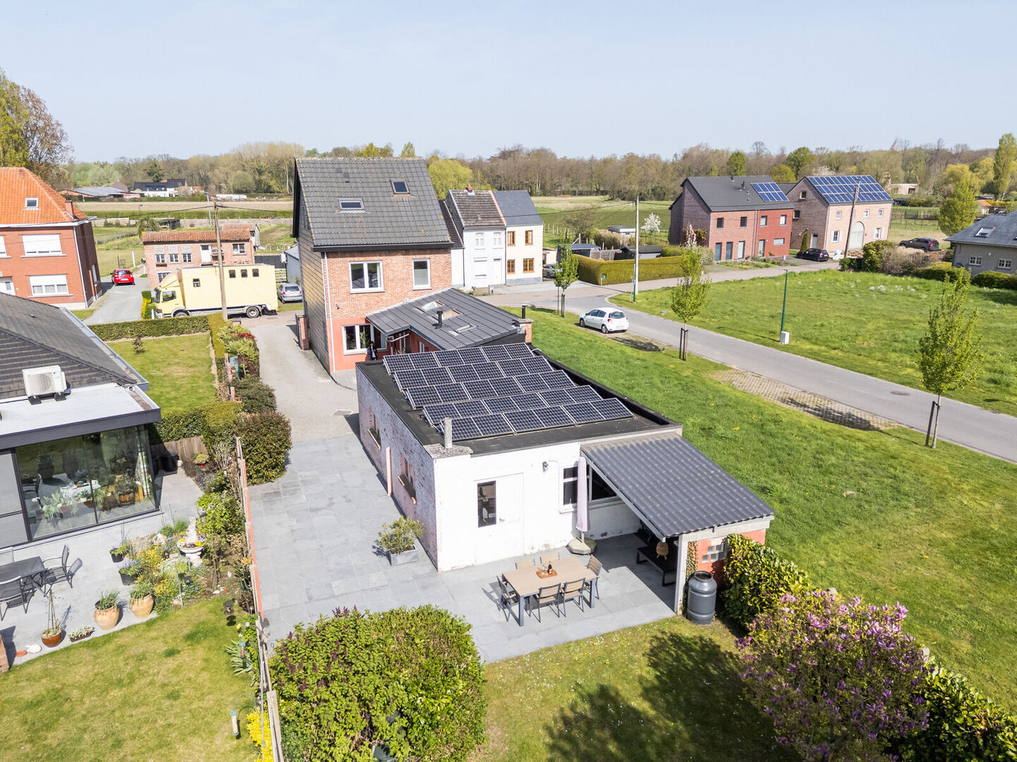 The garage roof is fitted with 15 solar panels.