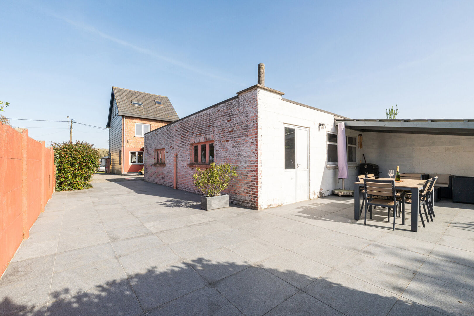 In addition, the property features a nicely landscaped tiled terrace, complemented by a partially covered area.