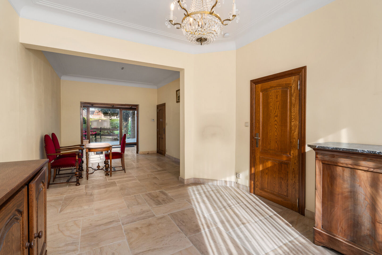 Le séjour est divisé en deux espaces et bénéficie d’une belle luminosité. Une véranda attenante assure une transition fluide vers la cuisine.