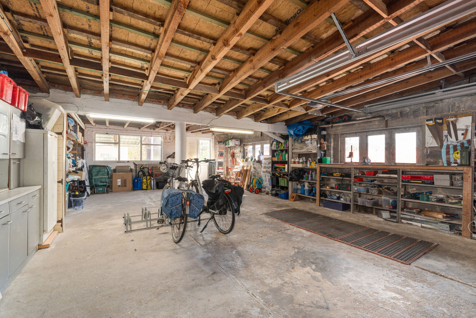 Achteraan de woning bevindt zich een bijzonder ruime garage/atelier.