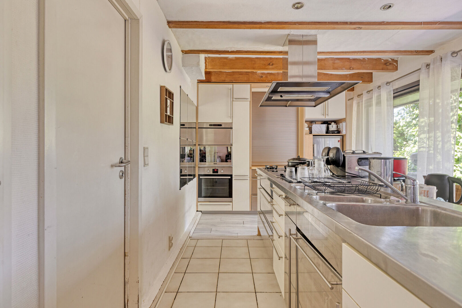 Ook de keuken geniet van veel natuurlijk licht en een mooi zicht op de tuin.