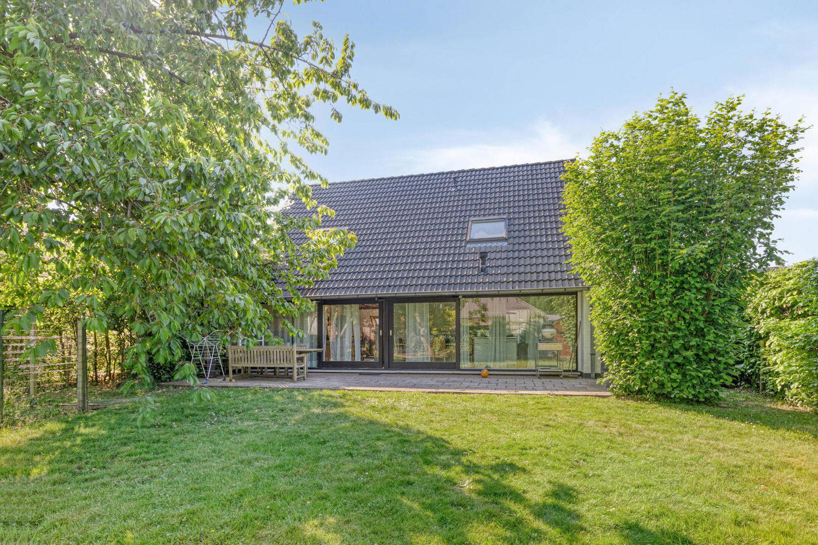 Vanuit de hal heeft men toegang tot de lichtrijke leefruimte met grote raampartijen die uitkijken op de zuidoostelijk georiënteerde tuin.
